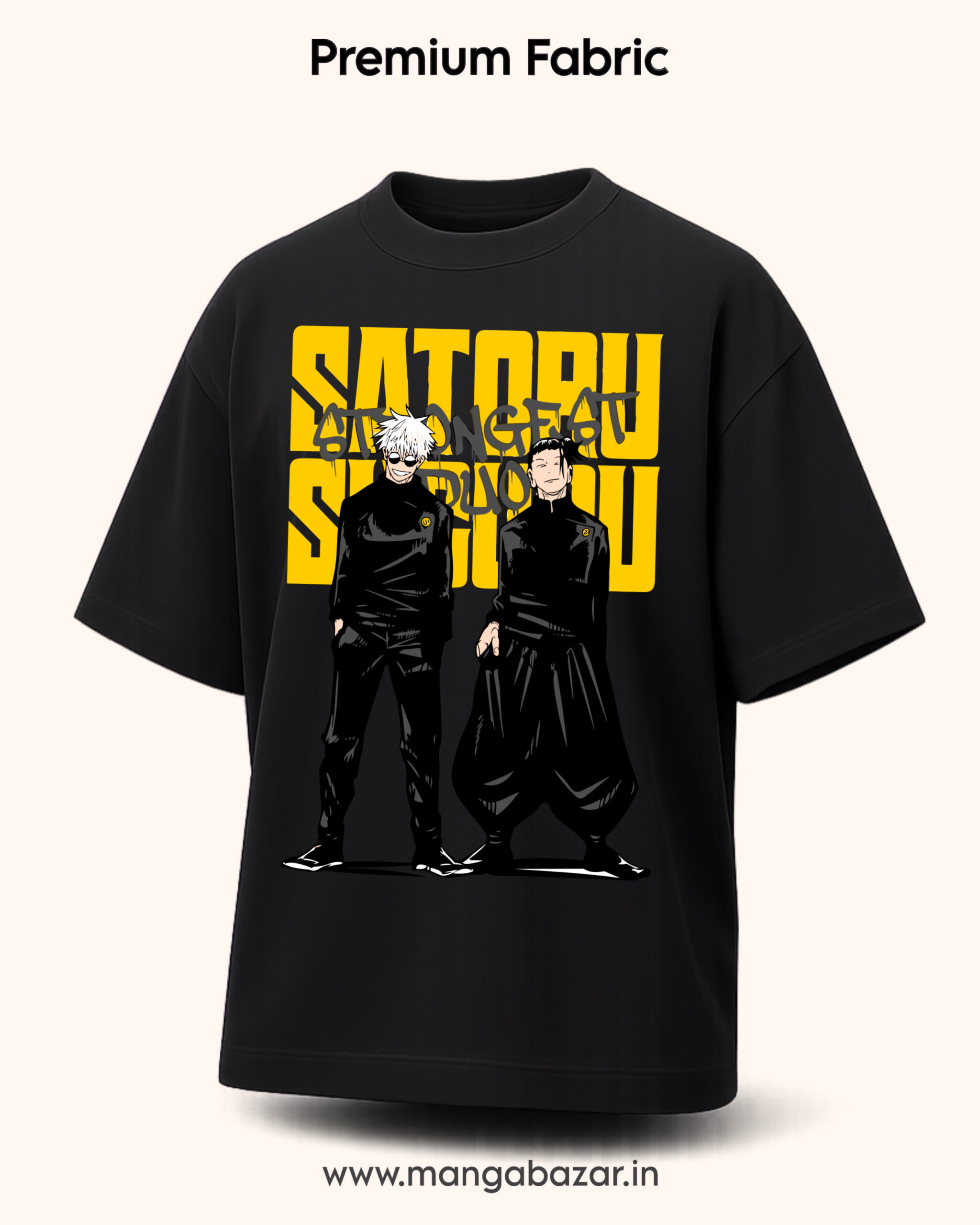 Step up your style with this oversized T-shirt featuring Satoru Gojo. Designed for a relaxed and modern streetwear fit, this tee delivers both comfort and standout appeal. The classic black color enhances the striking Gojo graphic, making it a bold addition to your wardrobe. Made from soft and breathable fabric, it ensures all-day comfort while maintaining long-lasting durability. Whether you’re heading out or just chilling, this T-shirt is a must-have for anime fans who want to represent their favorite character with confidence and style.